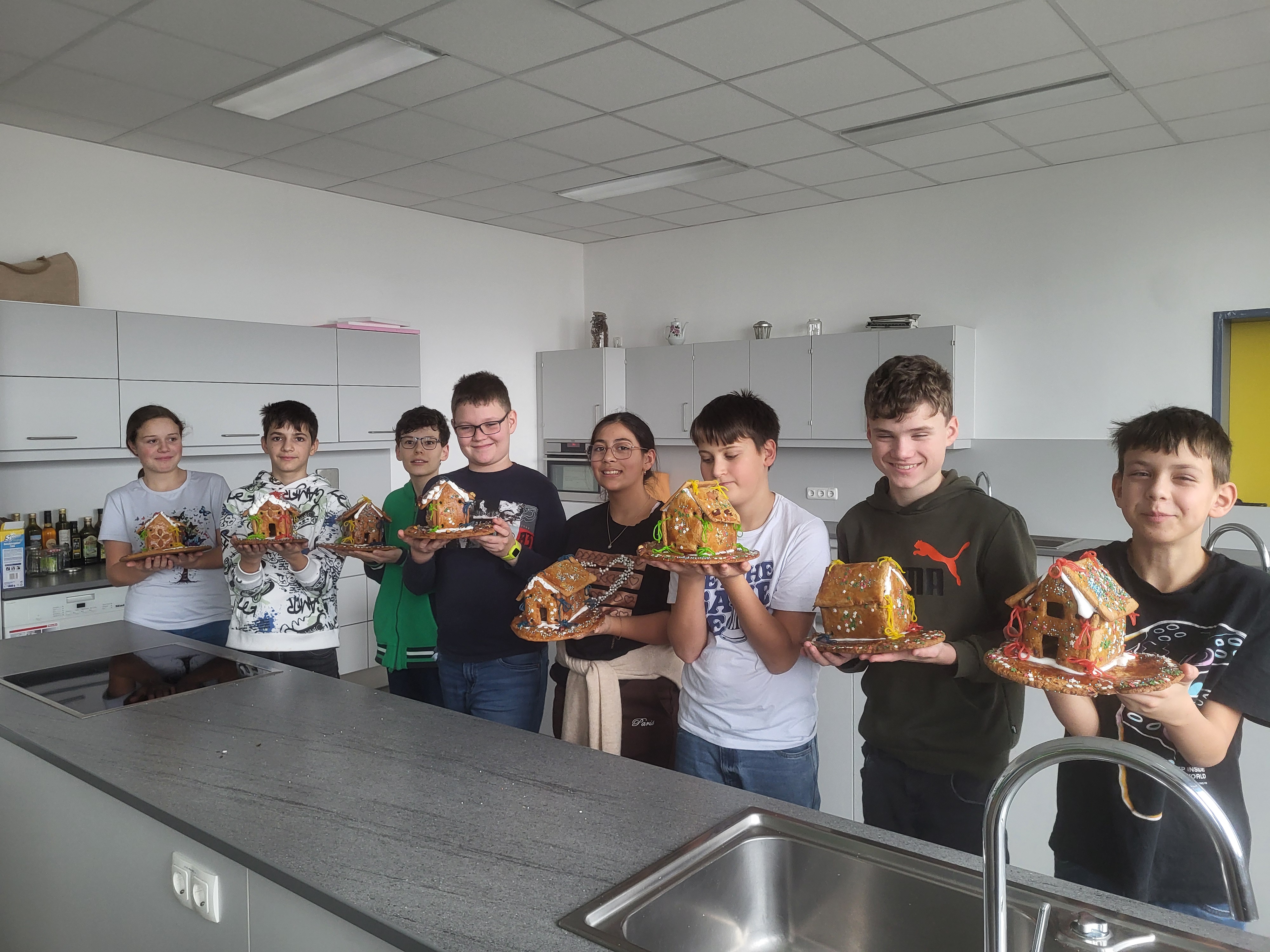 Im Kochunterricht wurden mit großer Begeisterung Lebkuchenhäuser gebacken und liebevoll verziert. Der Duft von Weihnachten und das gemeinsame Arbeiten sorgten für strahlende Gesichter und viel Freude. 🎄